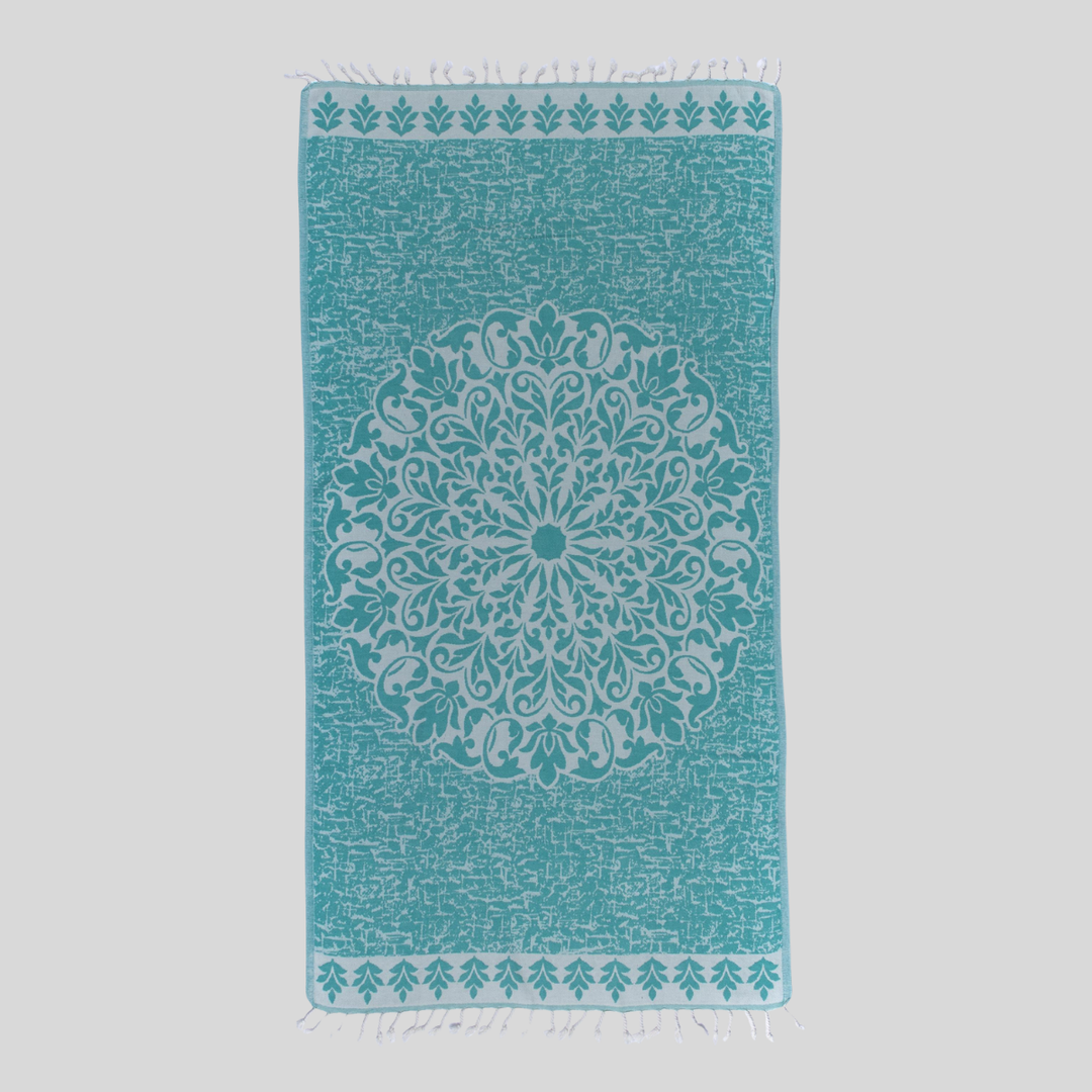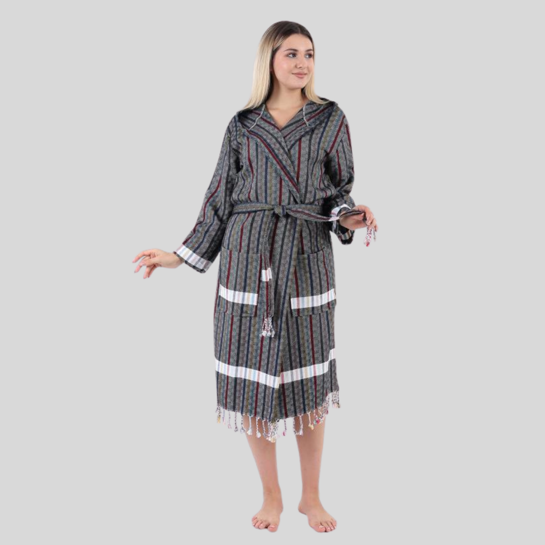 The handmade lace trim at the bottom, delicately adorned with wooden beads, reflects the beauty of traditional craftsmanship and fine attention to detail.
